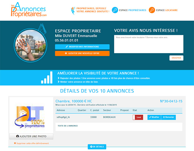 - Modifier votre bien à tout moment